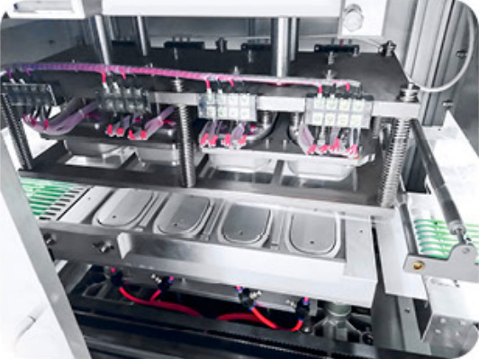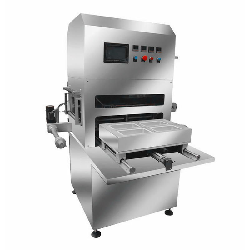 簡 介:全自動盒式(shì)氣調包(bāo)裝機 采(cǎi)用真空置換的(de)方式對產品(pǐn)進行充氣保鮮包裝,即在全密封(fēng)的狀態下,利用真空(kōng)泵抽盡容器內的空氣,然後衝入適合食品延期保鮮的混合氣體(tǐ),當容器內外的壓力相等時封(fēng)口。這種包裝的容器內含氧量低,從而有限的解(jiě)決了傳統衝洗(xǐ)補償式氣調包裝由於含氧量高保鮮效果(guǒ)不佳的問題,廣泛(fàn)應(yīng)用於肉(ròu)、禽、魚以及(jí)果蔬等新鮮食品、熟肉(ròu)製品、麵包糕點等烘烤食品的包裝(zhuāng)。經過氣調包裝的(de)食(shí)品,由於較(jiào)好的(de)保持了(le)食品原有的口感、色澤、形狀及營養,同時可達到較長的保鮮期。