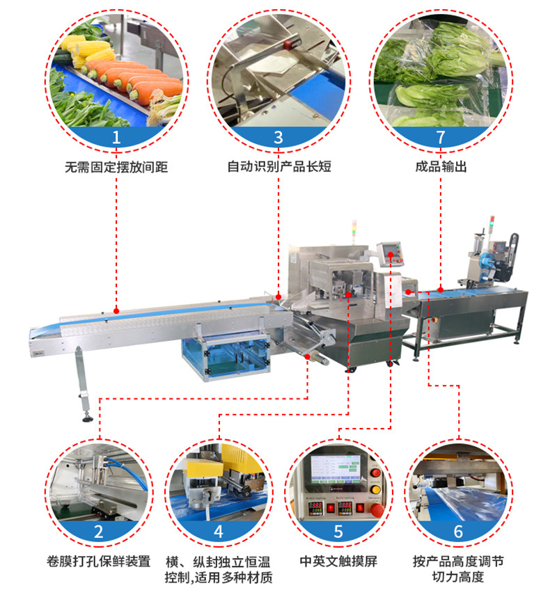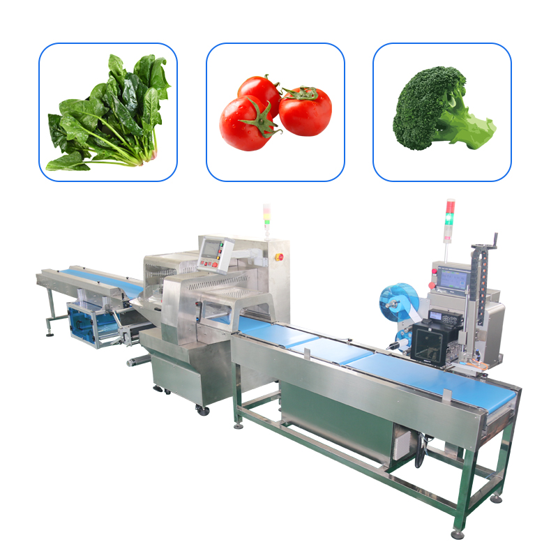 根據市場需求開發的一款全自動 高速 多功能蔬菜包裝(zhuāng)機,適用(yòng)於,長豆 土豆 白(bái)菜 胡蘿卜 香菜 卷心菜 白菜 豆角 山藥 胡蘿卜、油麥菜、生菜、韭菜、空心菜、香菜、蔥、卷(juàn)心菜、蔥、上海青、芹菜、洋芋、洋蔥、生薑、山藥(yào)、藕、蒜(suàn)、茭白、大蔥(cōng)等冬瓜、絲瓜、苦瓜、黃瓜(guā)、西葫(hú)蘆、南瓜、茄子、辣椒、西(xī)紅柿、玉米類型產(chǎn)品的裝袋(dài) 包裝 自動打印生產日(rì)期!實時(shí)稱(chēng)重打印貼(tiē)標。