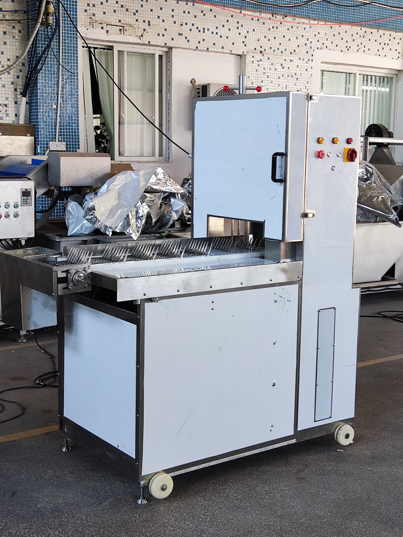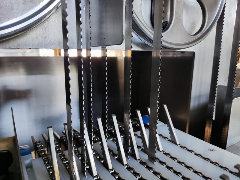 簡 介:我們公司(sī)自主設計、研發、製造的多段鋸(也稱連續式鋸(jù)骨機)是一款多用途、多(duō)鋸(jù)條(tiáo)的鋸骨機,專門用於冷凍食品切割。它可以(yǐ)輕鬆應對豬蹄(tí)、凍肉、排骨、牛羊肉、雞鴨等食(shí)品的切條和切塊,適用於零(líng)下-3/-18度的冷凍食品鋸切。我們可以(yǐ)根據客戶需求,定製2鋸條、4鋸條、6鋸條、8鋸條等多段鋸,切割規格範圍為2CM-10CM。它是肉類加工(gōng)企業的最佳選擇。快(kuài)來聯係我(wǒ)們,選購一款屬於您的優(yōu)選設備吧!