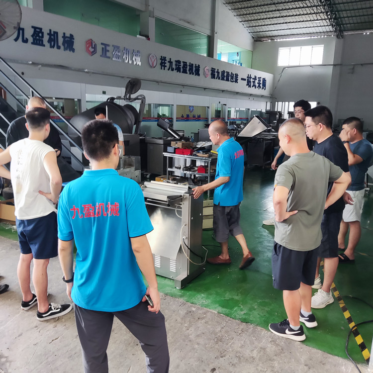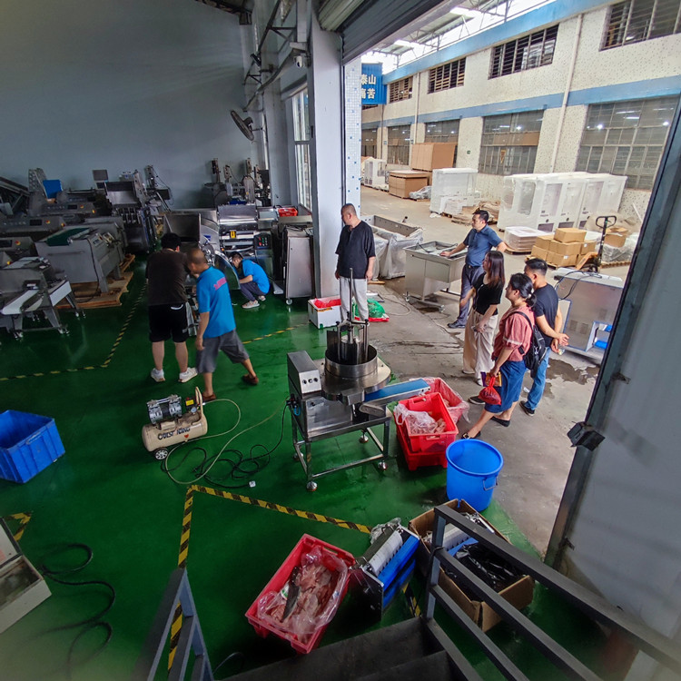 今天的客戶有特點啊! 好(hǎo)幾波客戶都是購買肉類切(qiē)割設備的!鮮肉切絲機,鮮排骨切塊(kuài)機,鮮豬蹄切塊機,鮮肉斬切機,豬皮去油機悉數亮相。好(hǎo)熱鬧啊!
