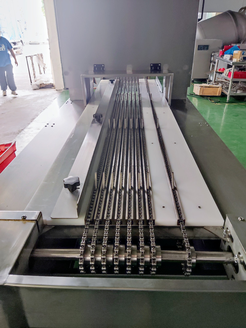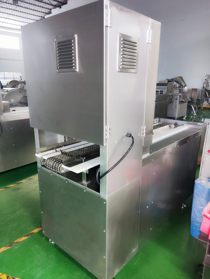 我們公司研發(fā)製造了一(yī)款多用途多鋸(jù)條鋸骨機,其自主設計和製造過程均由我們獨立完成。該設備主(zhǔ)要用於切割冷凍食品,如豬蹄、凍肉、排骨(gǔ)、牛羊肉、雞鴨(yā)等。我們采用零下-3/-18度(dù)的冷凍環境(jìng)進行食(shí)品(pǐn)切割,效果顯著。