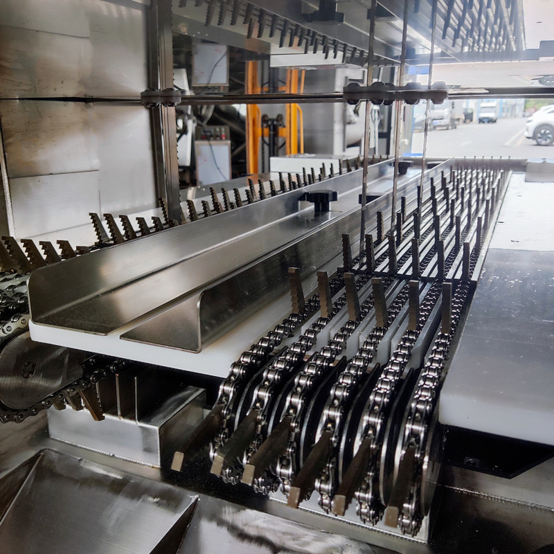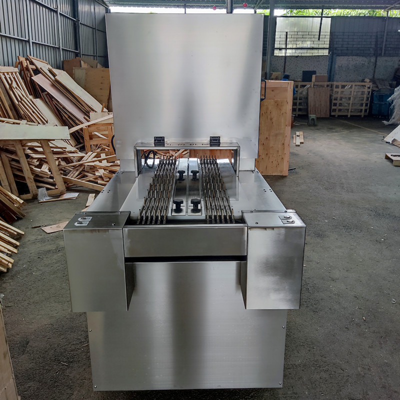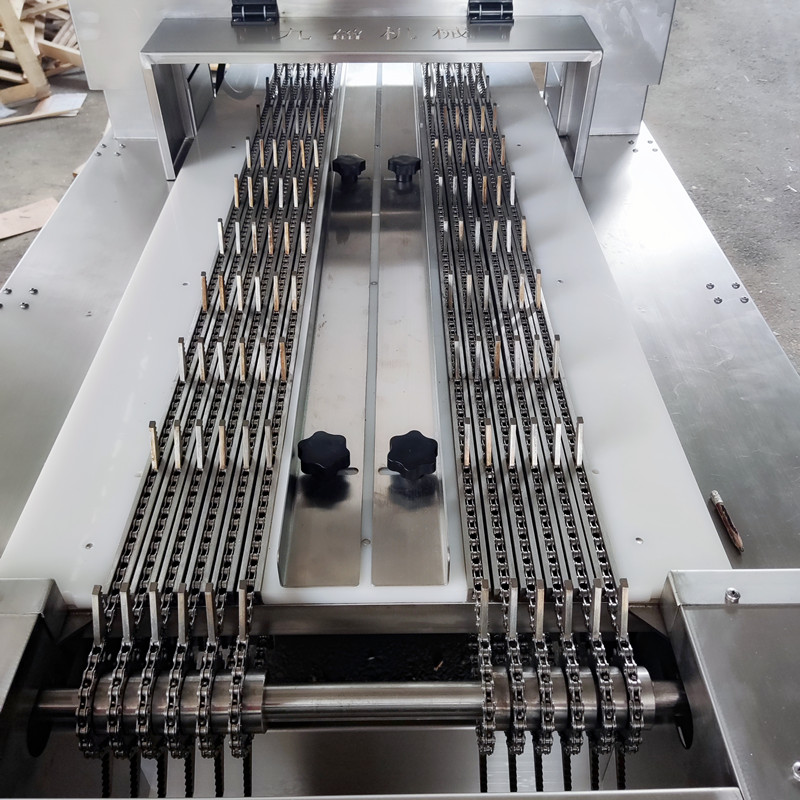 2️⃣ 多段鋸顧名思義就是多根鋸條同時工(gōng)作的鋸骨機。該設備具有(yǒu)雙排連(lián)續式輸送(sòng)切割通道,可以同時進(jìn)行多(duō)個物料的切割加工,提高了生產效率。而(ér)且,兩個人可以同時操作加工,進一步增加了產量,同(tóng)時(shí)也減少了人工操作的風險,有效避免了仿製傷人事故的發生。