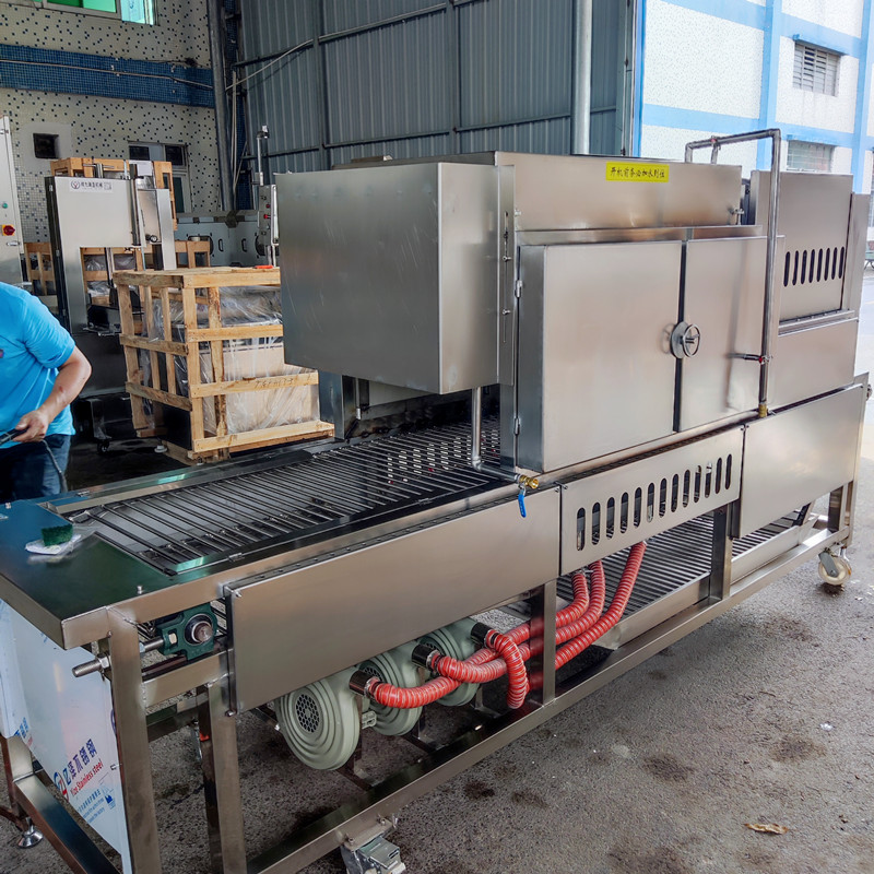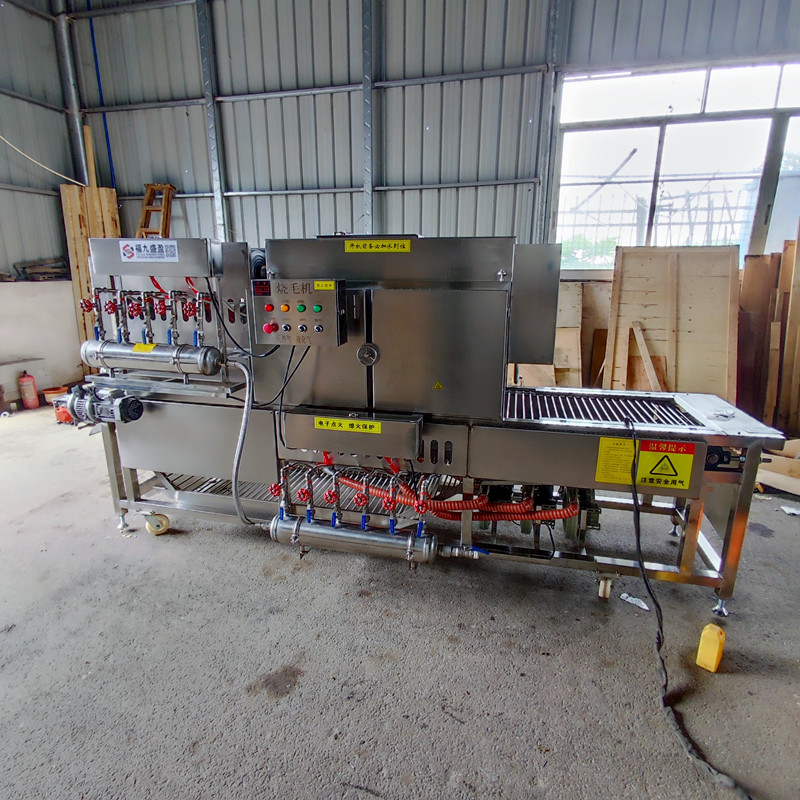 2024年8月23日、坐標廣州九盈機械公司和花季成人色片食品機械公司綜(zōng)合廠區(qū);新型大豬腳燒毛機整裝待發;該設備主(zhǔ)要用於豬腳、肘子、清除肉皮表層的長(zhǎng)毛、具(jù)有高(gāo)效安全、操作簡(jiǎn)單的特點、特別是根據客(kè)戶生產物料的大小可以進行、輸送變速、火苗大小(xiǎo)調整、本機具有天然氣和液化氣雙用的功能;采用上層5頭噴火、下(xià)層6頭噴火;共計11個噴火頭360度全覆(fù)蓋燃燒;