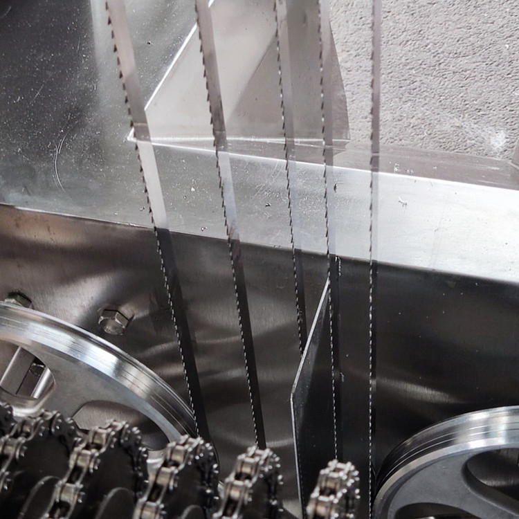 簡 介:我們公(gōng)司自主設計、研(yán)發、製造的多段鋸(也稱連續式鋸骨機)是一款多用途、多鋸條的鋸骨機,專(zhuān)門用於冷凍食品切割(gē)。它可以輕鬆應對豬(zhū)蹄、凍肉、排骨、牛羊肉、雞鴨等食品的切條和切(qiē)塊,適用於零下-3/-18度的冷(lěng)凍食品(pǐn)鋸切。我們可以根據客戶需求,定(dìng)製2鋸條、4鋸條、6鋸條、8鋸條等多段鋸,切割規格範圍為2CM-10CM。它是肉類加工企業的最佳選擇。快來聯係我們,選購一款屬於您的優(yōu)選設備吧!